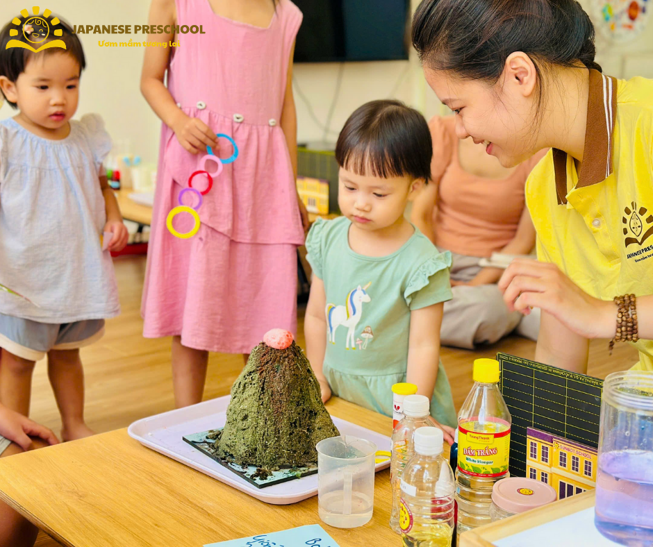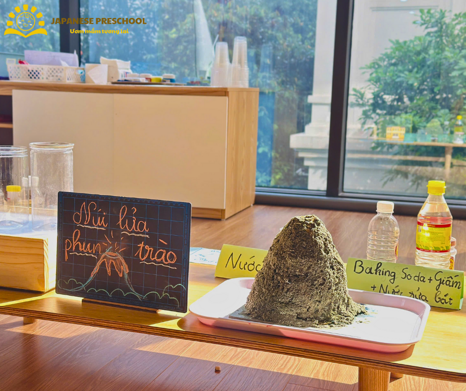 Một điểm nhấn khác chính là khu vực STEAM – nơi các con được tham gia vào những thí nghiệm hấp dẫn như: “mưa trong nước”, “cầu vồng di chuyển”, khơi dậy sự tò mò, yêu thích khám phá khoa học từ sớm.