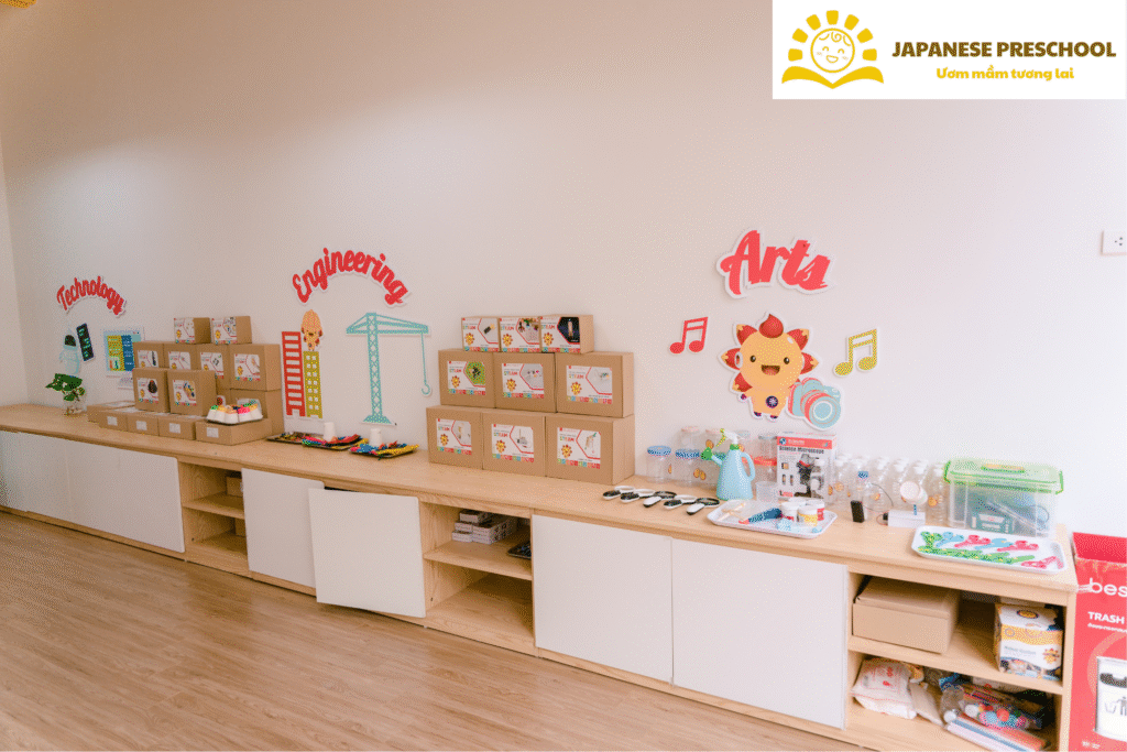 Chương trình giáo dục STEAM tại Trường Mầm Non Nhật Bản là một hành trình sáng tạo và thú vị dành cho các bé từ 3 đến 6 tuổi. Chúng tôi tin rằng việc kết hợp các lĩnh vực Khoa học, Công nghệ, Kỹ thuật, Nghệ thuật và Toán học từ khi còn ở tuổi mầm non không chỉ giúp trẻ em phát triển kỹ năng sáng tạo mà còn là nền tảng quan trọng cho sự thành công trong tương lai.